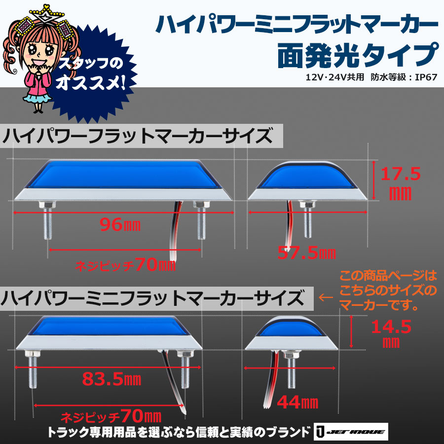 ハイパワー ミニフラットマーカー 面発光タイプ 12V・24V共用 防水等級:IP67