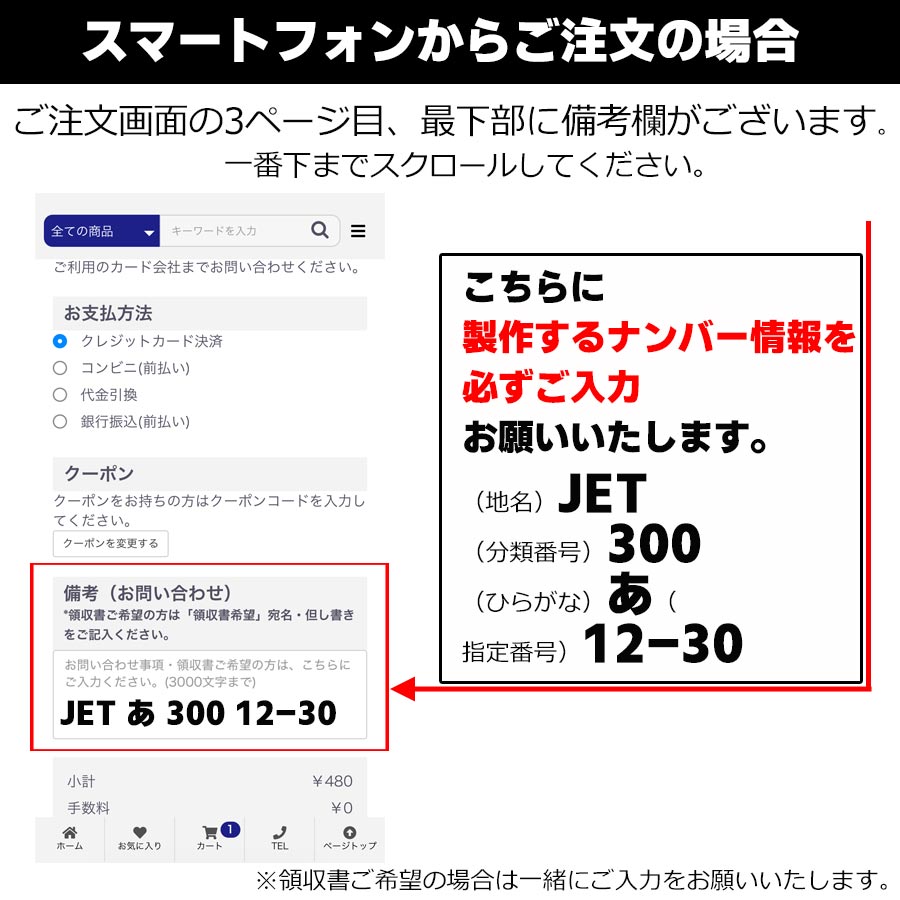 ナンバープレート情報を備考欄にご記入下さい。