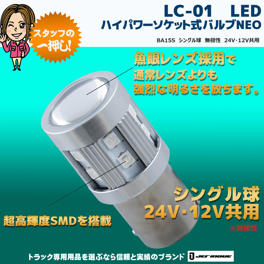 LC-01 LED ハイパワーソケット式バルブ NEO BA15S シングル球 無極性 24V・12V共用