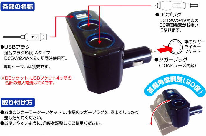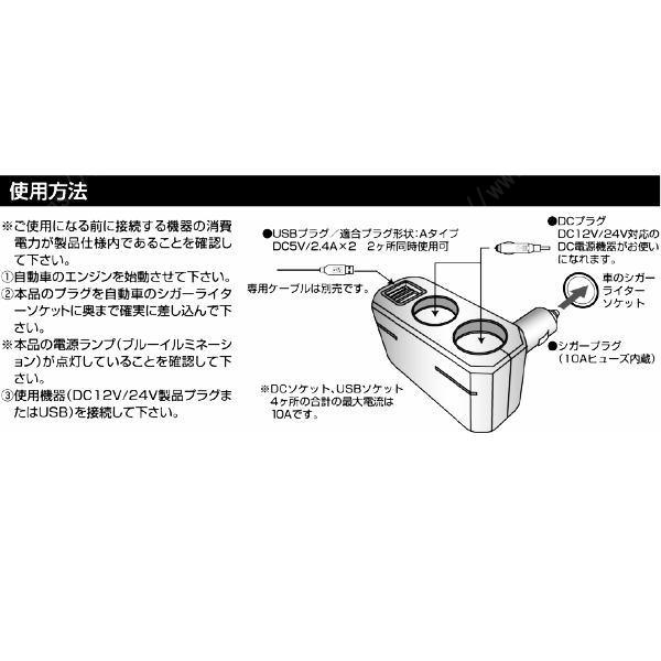 ●USB出力電流:4.8A(2.4Ax2)2ヵ所同時使用可能