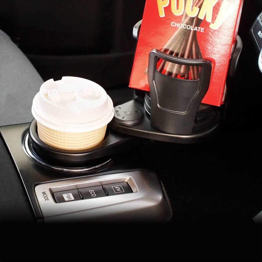 マルチホルダー側が回転することでドリンク1本分の純正ドリンクホルダーを2本分にできる。