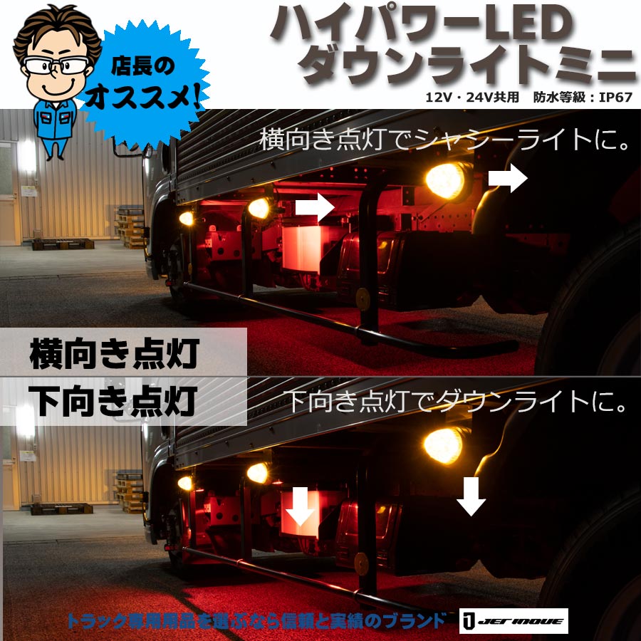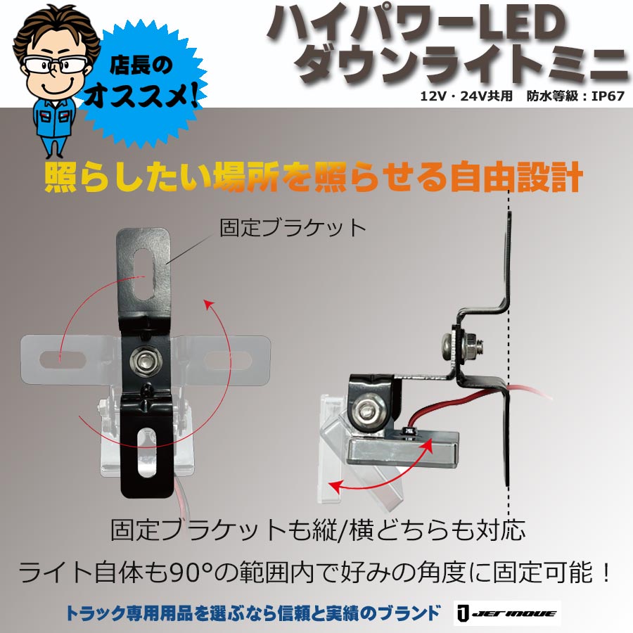 ●商品名:ハイパワーLED ダウンライトミニ 角度調整機能付き 12V・24V共用 防水等級:IP67