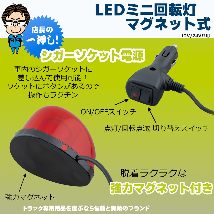 ●商品名:LED ミニ回転灯 マグネット式 12V・24V共用