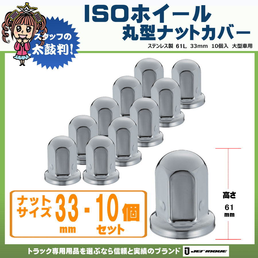 ISOホイール 丸型ナットカバー ステンレス製 51L 33mm 10個入り 大型車用