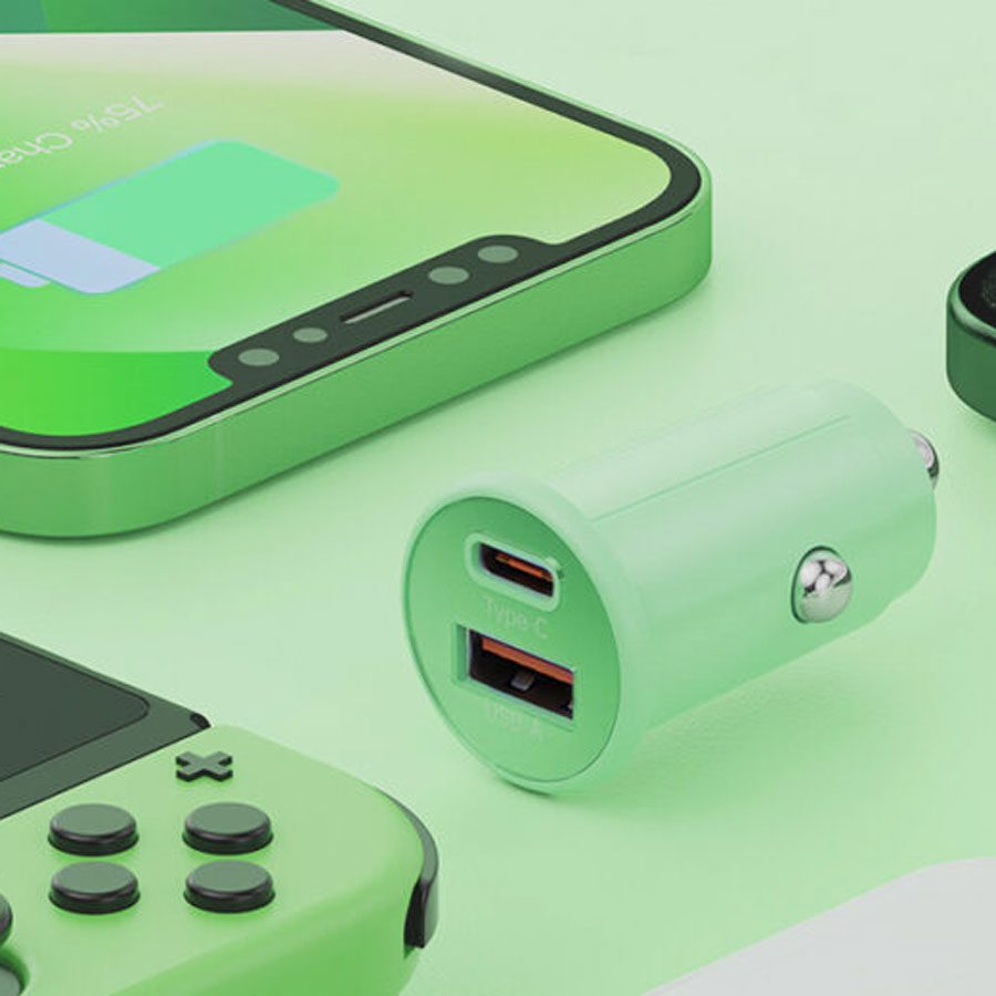 くすみカラー充電器+ケーブル A+C エアログリーン 12V・24V共用 X-360