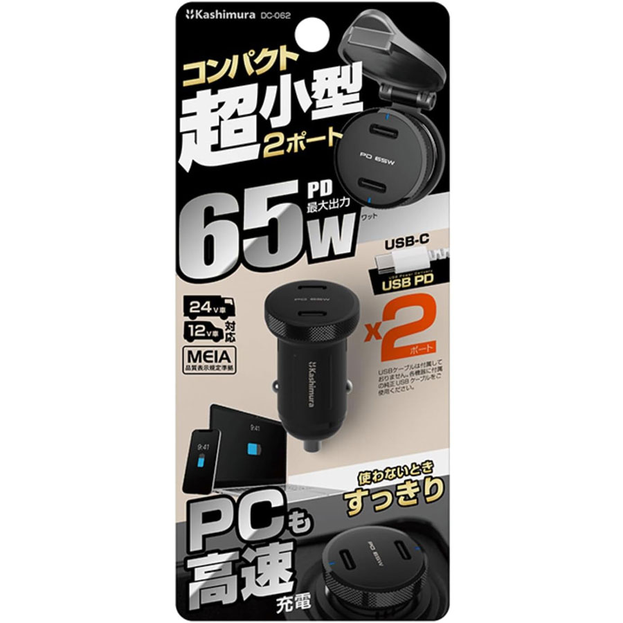 ●商品名:DC-PD65W USB-C 2ポート コンパクト 12V・24V共用 DC-062