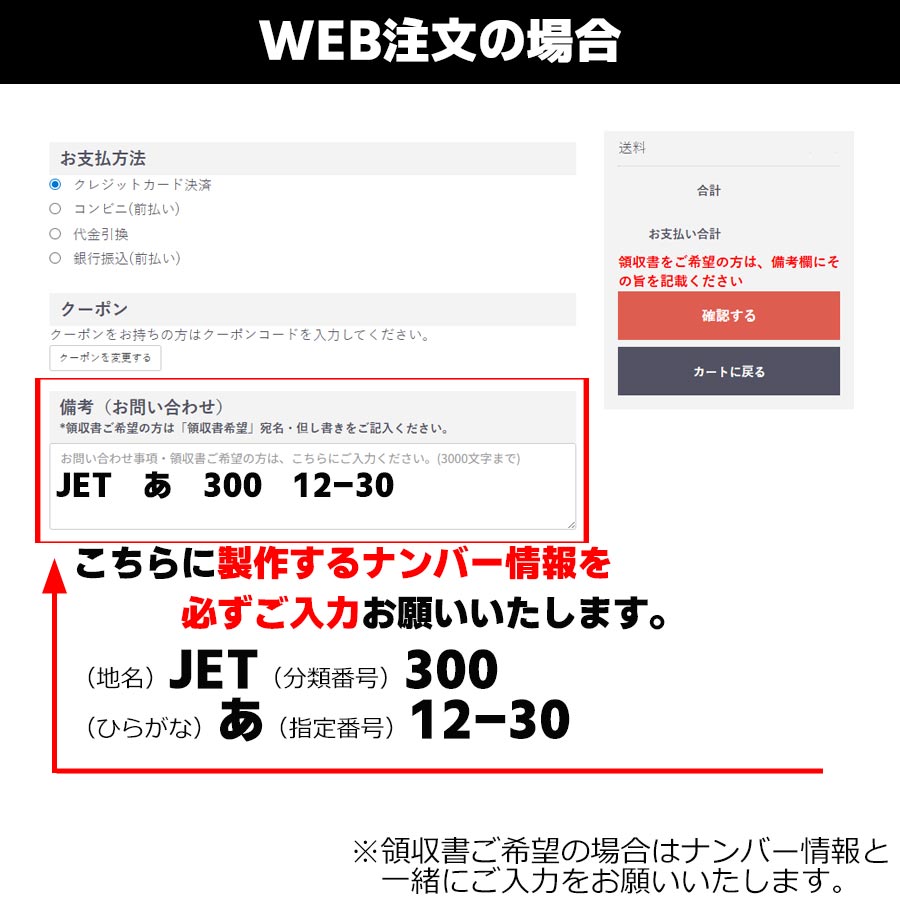 ※ご入力例:JET 300 あ 12-34